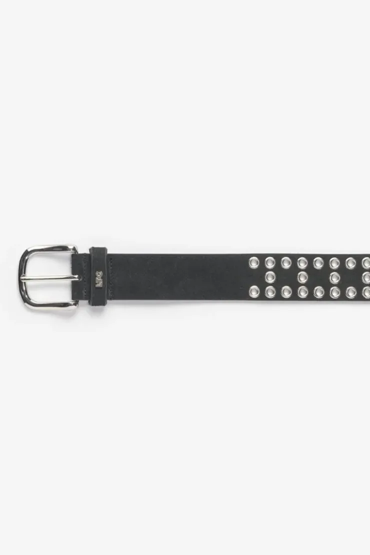 Cette Ceinture Lucia Est Ideale Pour Completer Vos Tenues Et Donner Un Cote Rock Avec Son Cuir Velours Pour Un Aspect Daim Noir Habille D’Oeillets Metalliques Argentes Et Sa Boucle Argentee.