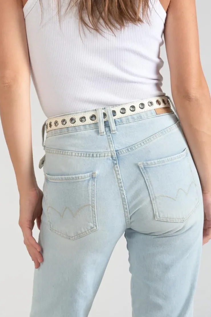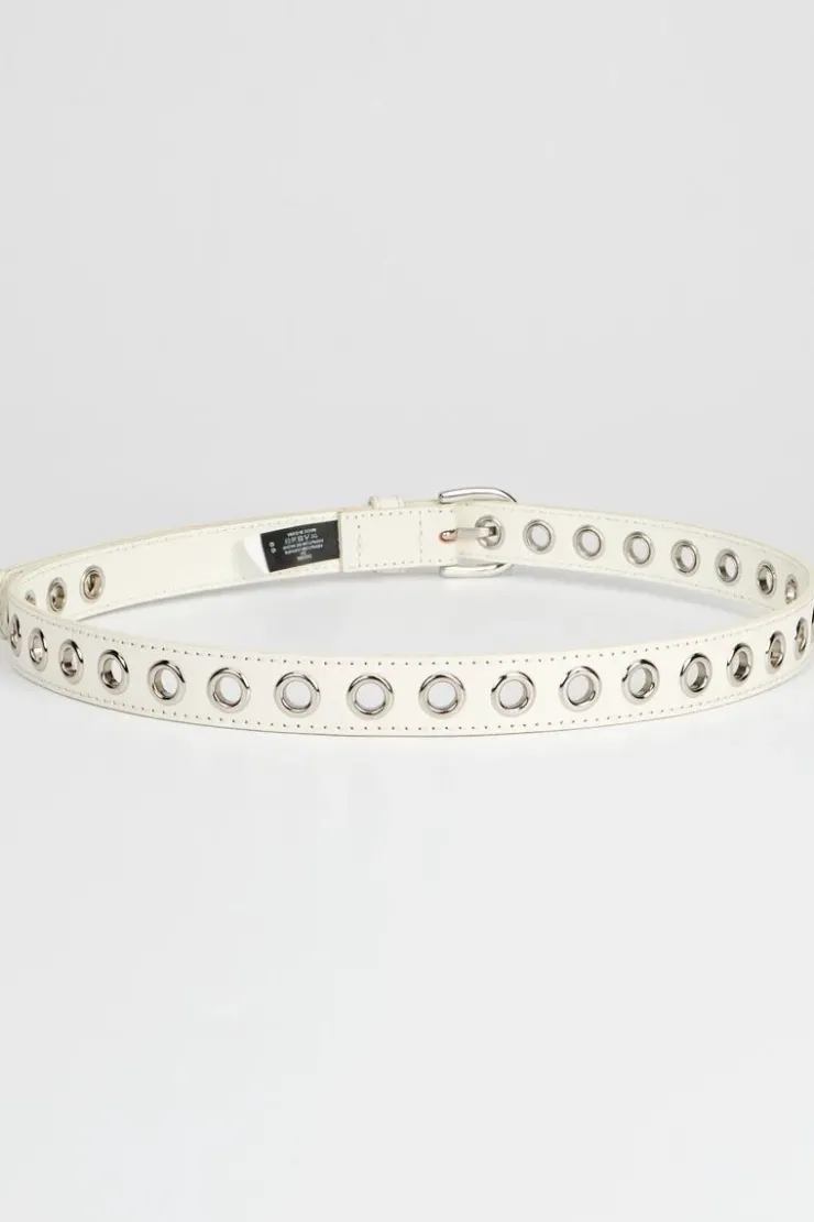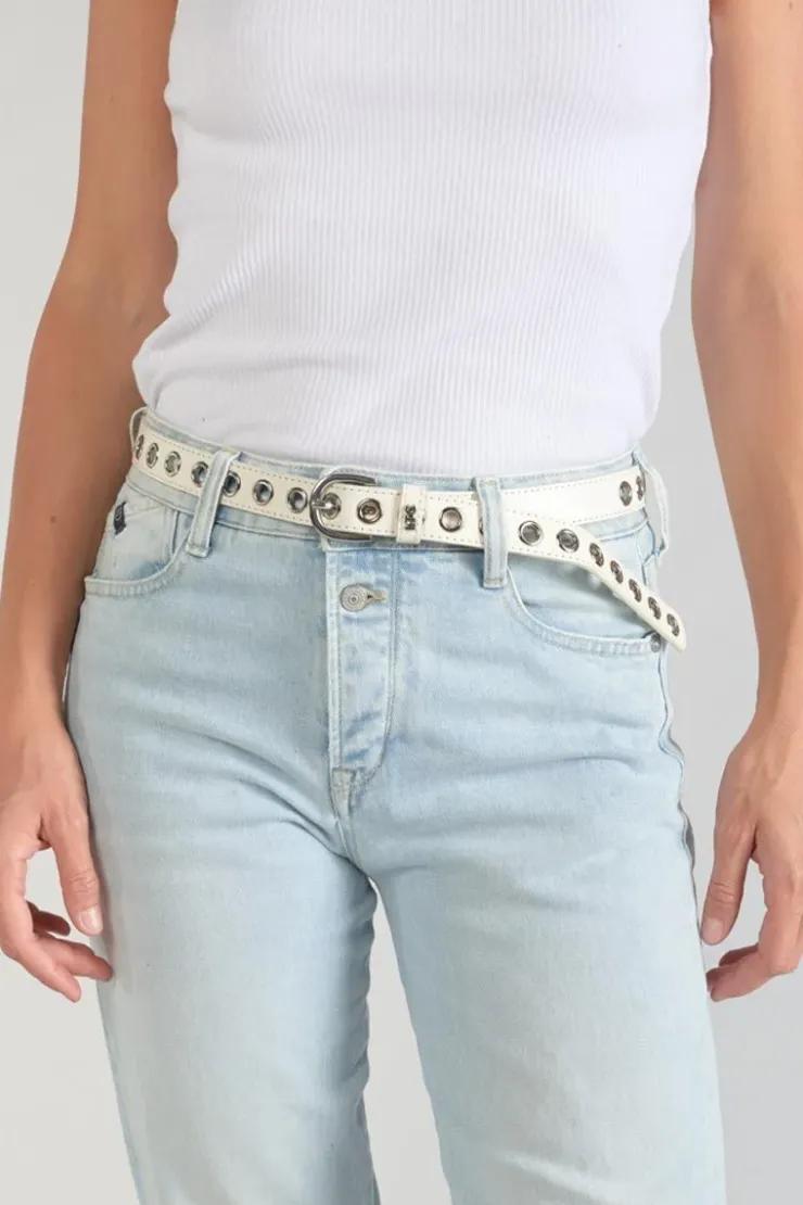 Cette Ceinture Taouna Est L’Accessoire Mode De Votre Tenue Avec Son Cuir Blanc, Ses Oeillets Argentes Tout Le Long De La Ceinture Et Sa Mini Boucle Argentee.