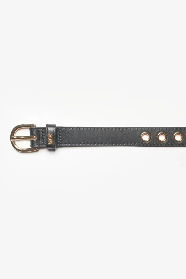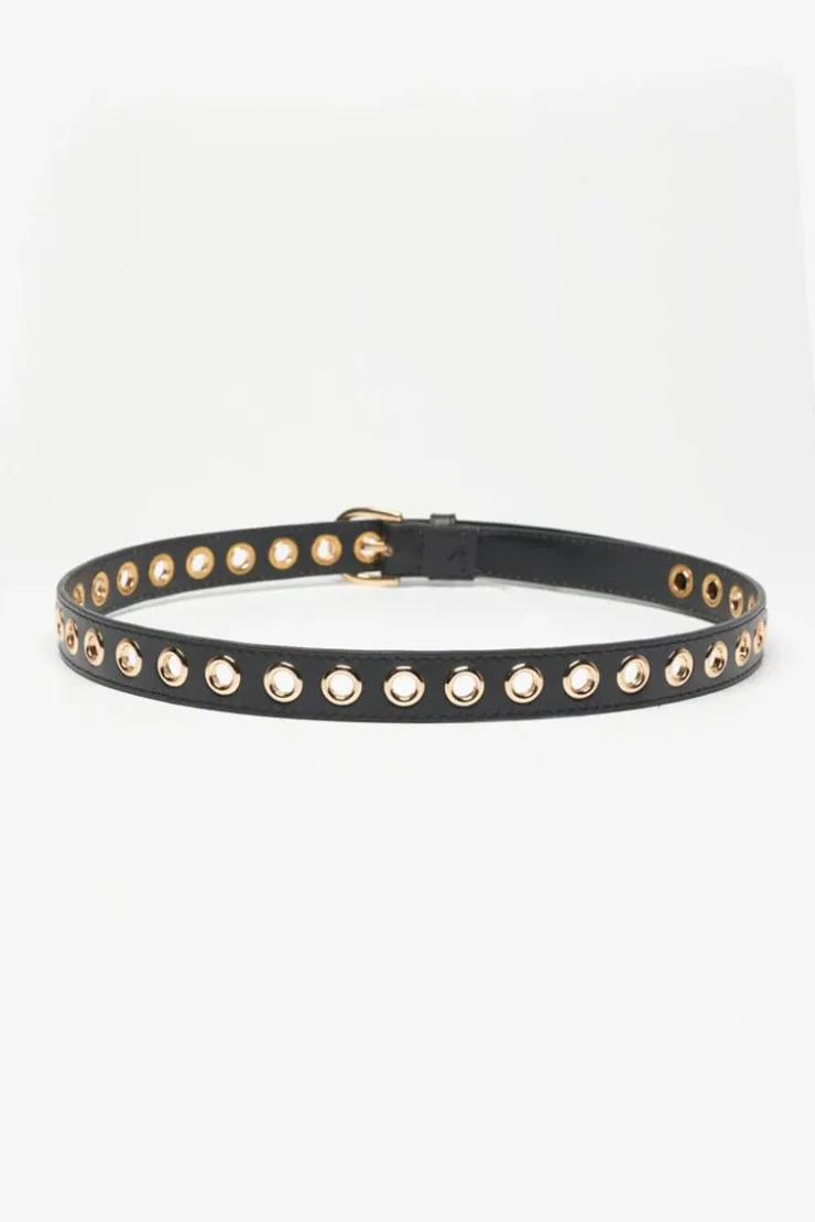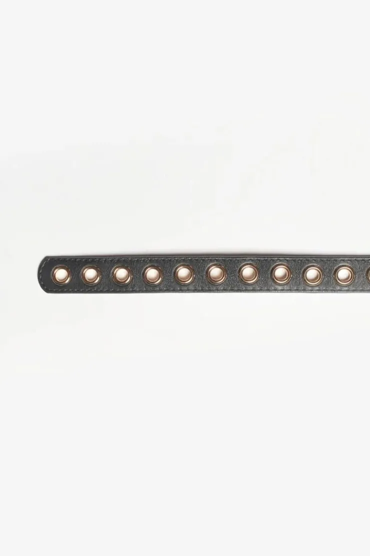 Cette Ceinture Taouna Est L’Accessoire Mode De Votre Tenue Avec Son Cuir Noir, Ses Oeillets Dores Tout Le Long De La Ceinture Et Sa Mini Boucle Doree.