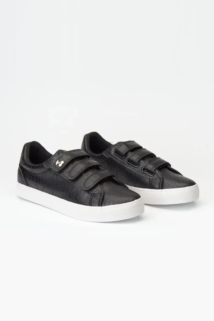 Ces Baskets Vic Noires Sont Un Indispensable De Votre Dressing Avec Leur Effet Python Et Leur Fermeture A Scratch Tres Tendance. Pour Plus De Feminite, Plusieurs Details Dores Habillent Les Baskets Comme Une Application Metallique Cerises Sur Un Des Scratchs, Un Imprime Le Temps Des Cerises Sur Le Contrefort Et Le Logo Sur La Languette.