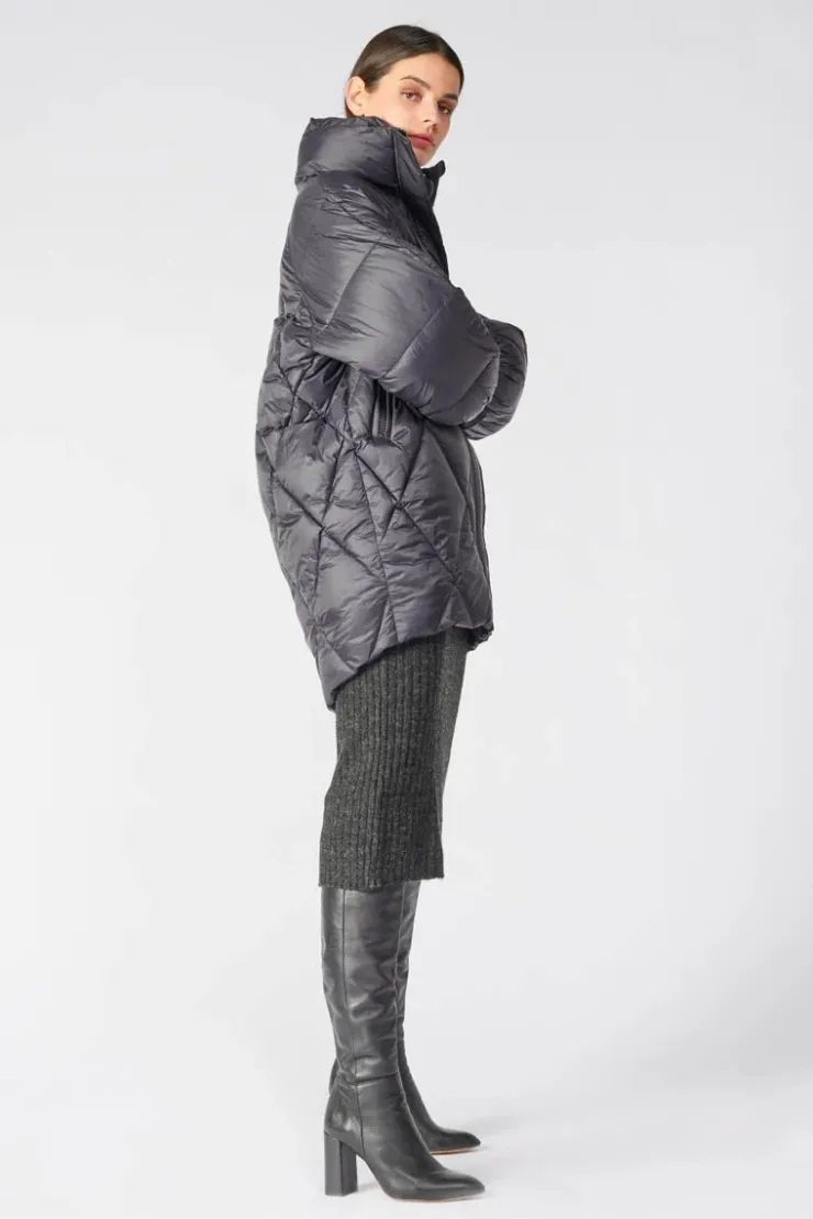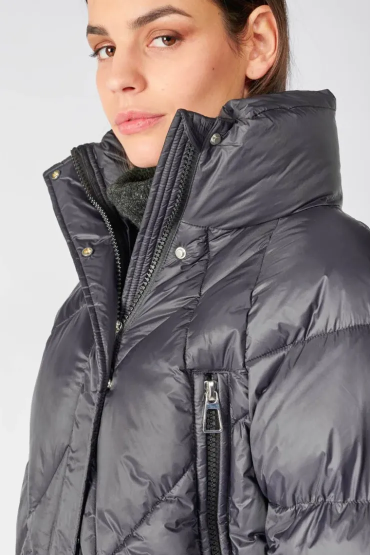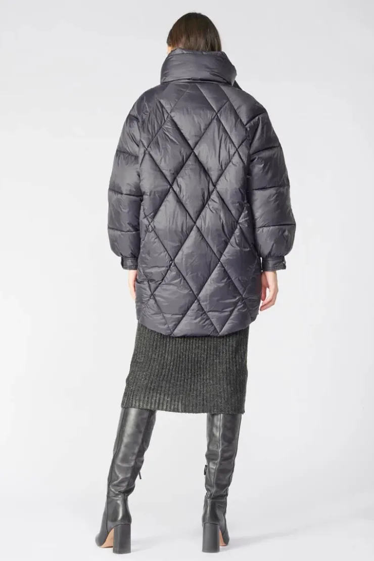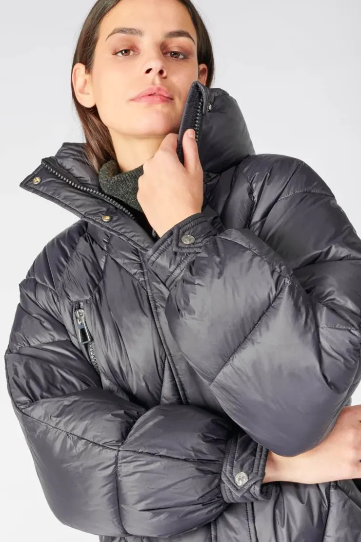 Cette Doudoune Dotti Noire Est La Doudoune Branchee Qu’Il Vous Faut Cet Hiver Avec Son Col Montant, Son Effet Matelasse Oversize, Ses Deux Grandes Poches Poitrines Profondes Et Ses Gros Zips Argentes Au Niveau Des Poches Et De La Fermeture. Ses Poignets Habilles De Boutons Pression Argentes Et Sa Doublure A Motif Leopard Gris Apportent Plus De Style. Pour Plus De Confort, Une Poche Interieure Complete La Piece.