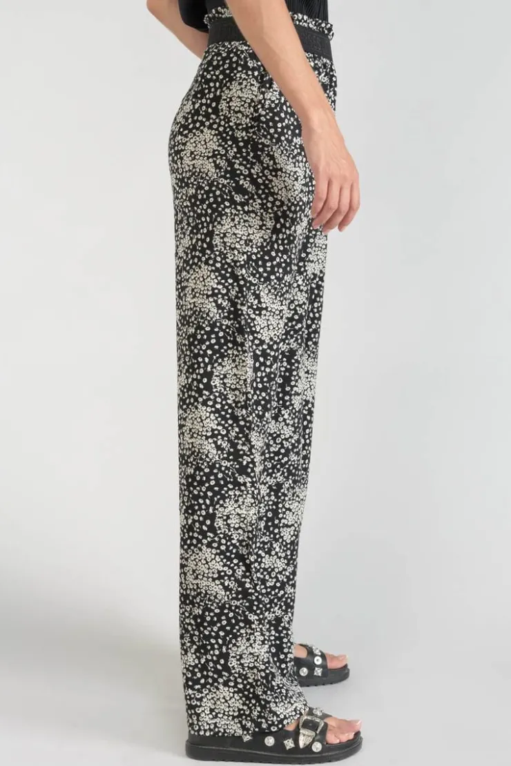 Femme Le Temps des Cerises Pantalons & Chinos-Pantalon Fluide Luisa A Motif Fleuri Noir Et Blanc