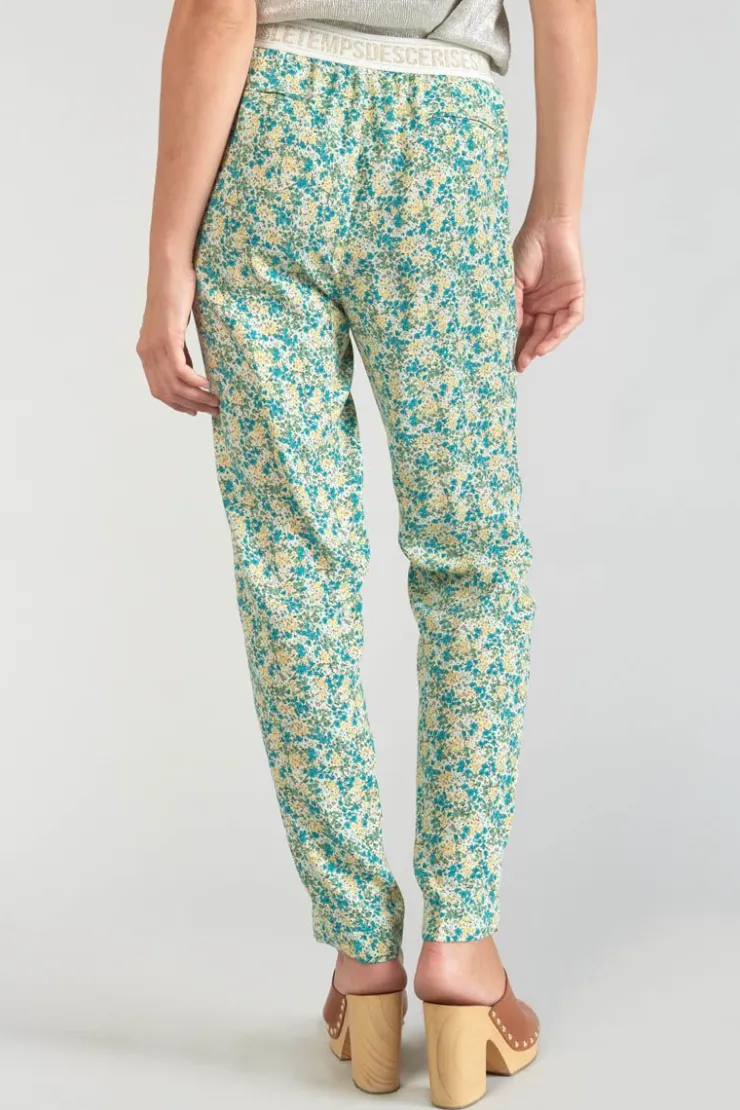 Femme Le Temps des Cerises Pantalons & Chinos-Pantalon Rani A Motif Fleuri Vert Et Bleu