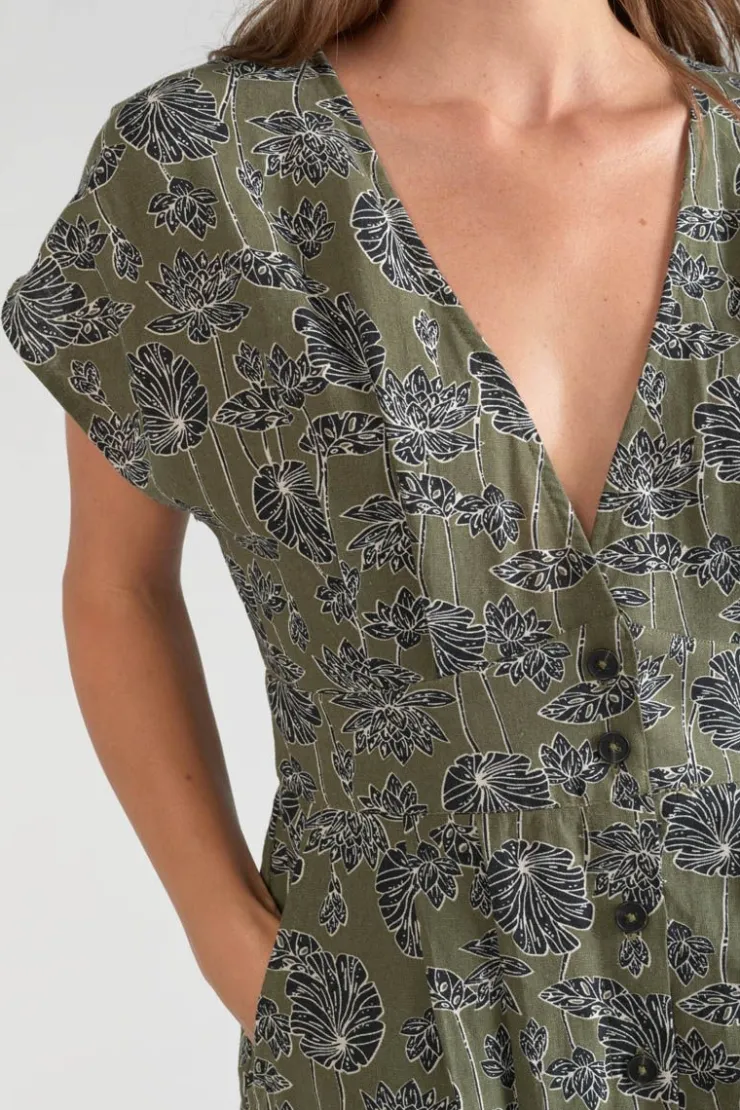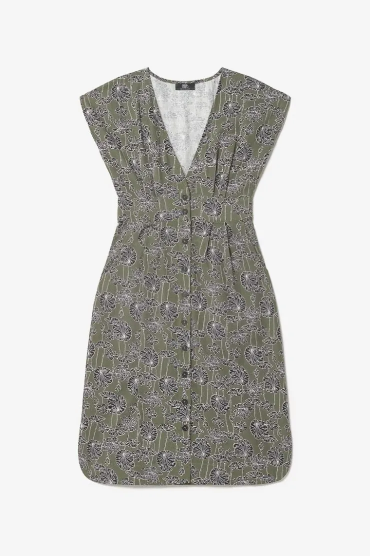 Cette Robe Croft En Lin Melange Kaki A Un Look Casual Avec Son Motif Fleuri Noir Et Blanc, Sa Taille Cintree Et Ses Boutons En Guise De Fermeture Sur Toute La Longueur. Pour Plus De Confort, Deux Poches Completent La Piece.