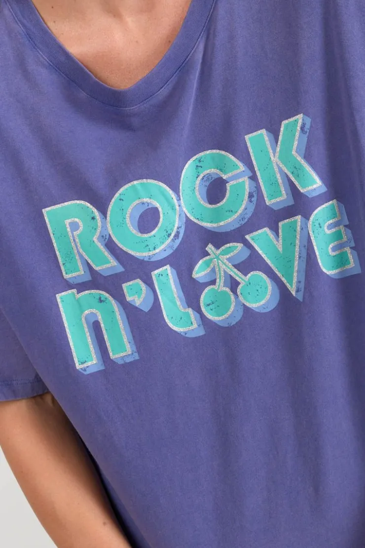 Ce T-Shirt Cassio A Un Look Casual Tendance Avec Sa Coupe Legerement Oversize, Son Tissu Violet A L’Effet Delave Et Son Imprime Colore A Paillettes.