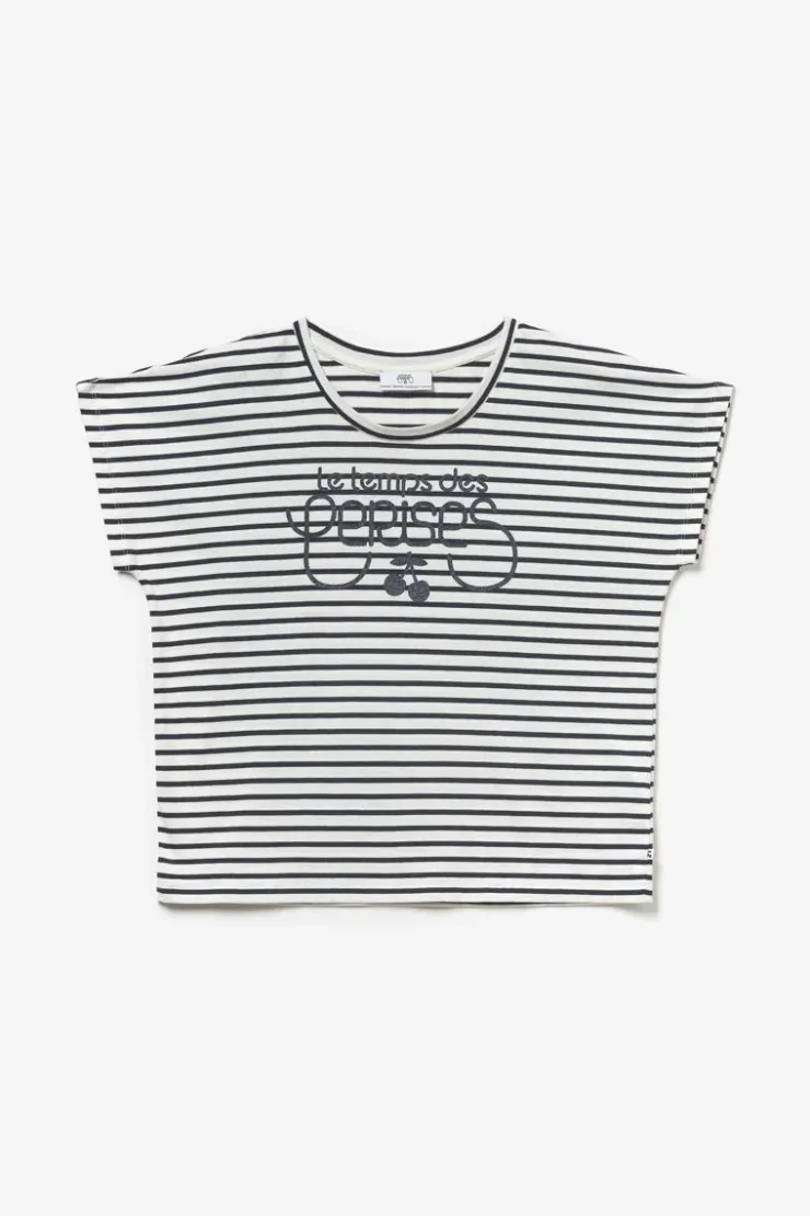Ce T-Shirt Sailor Est Tendance Et Feminin Avec Sa Mariniere Et Son Imprime A Paillettes Bleu Marine Personnalise « Le Temps Des Cerises ». Sa Coupe Loose Apporte Encore Plus De Style A La Piece.