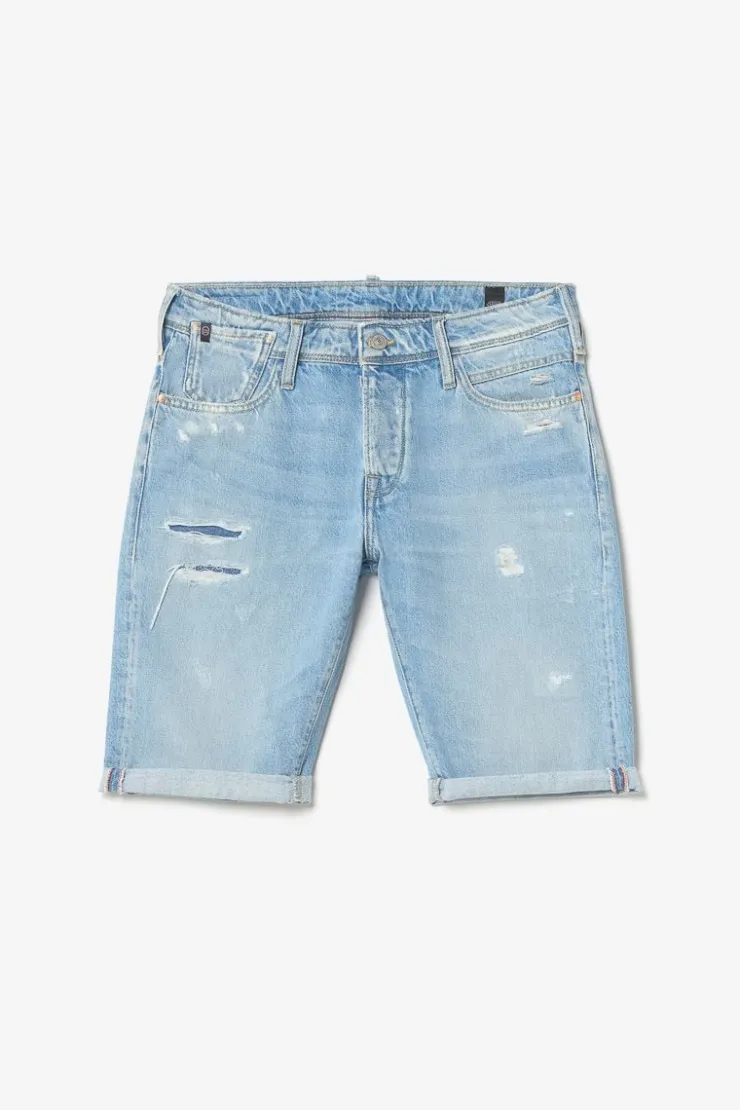 Homme Le Temps des Cerises Bermudas-Bermuda Laredo En Jeans Bleu Clair Delave Destroy