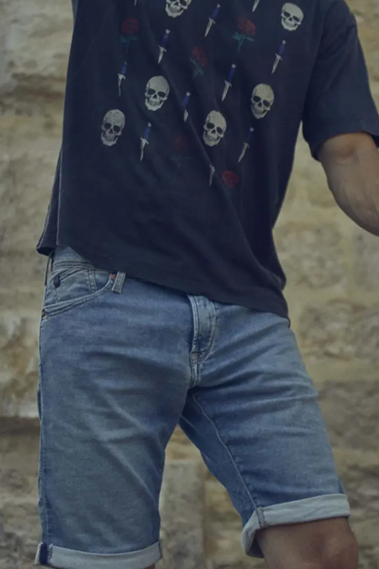 Ce Bermuda A Toile Tres Stretch Vous Donnera Un Look Casual Avec Son Delavage Bleu.