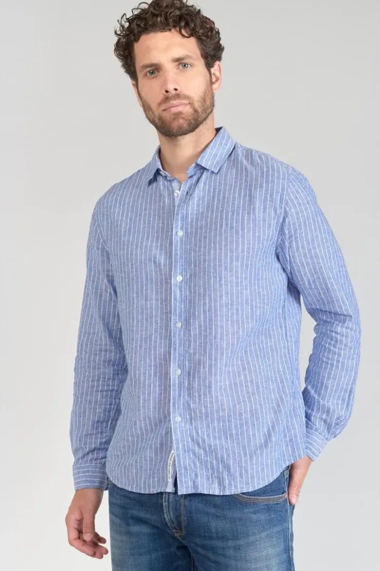 Homme Le Temps des Cerises Chemises-Chemise Bolko En Lin Melange Bleu Ciel