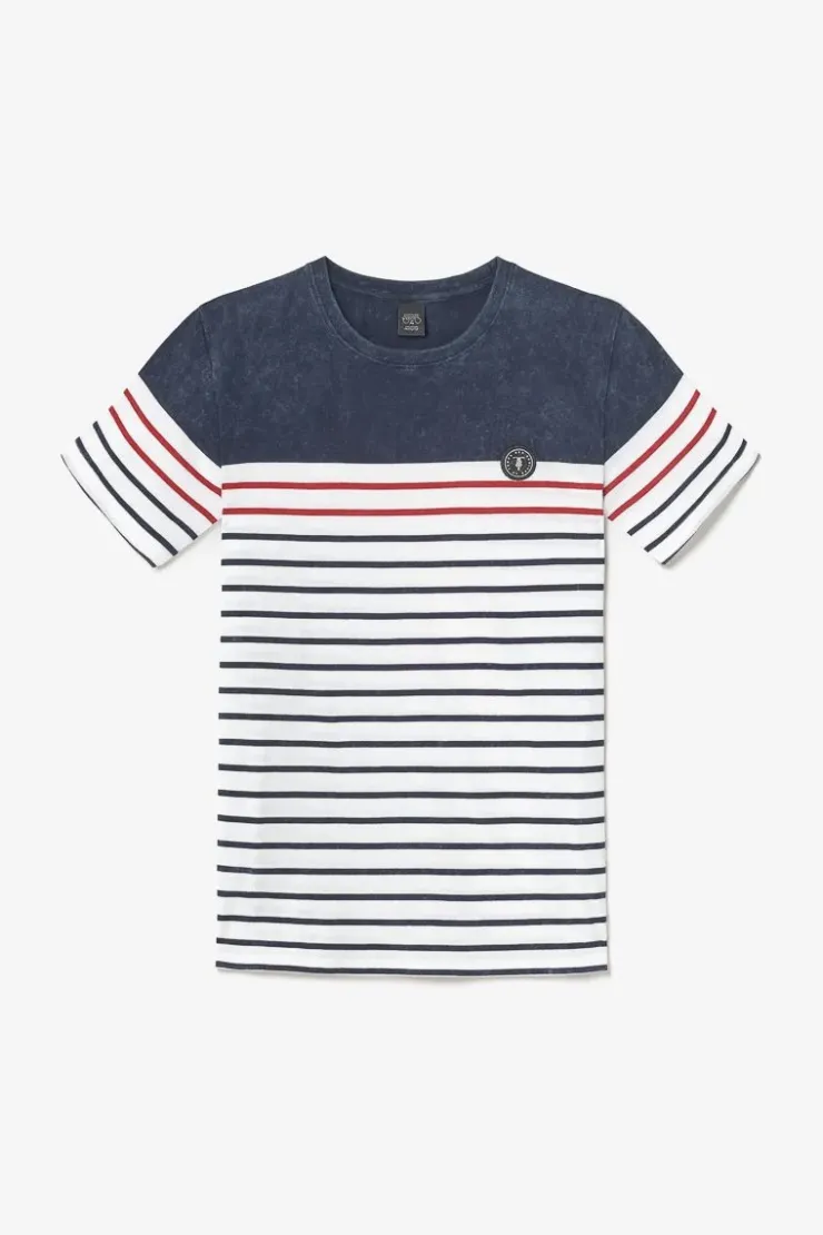 Ce T-Shirt Blank Est Un Intemporel Du Dressing Avec Sa Mariniere Bleu Marine Et Rouge Mais Reste Tendance Grace A Son Effet Delave Bleu Marine Au Niveau Des Epaules. Pour Le Detail, Un Ecusson Le Temps Des Cerises Sur La Poitrine.