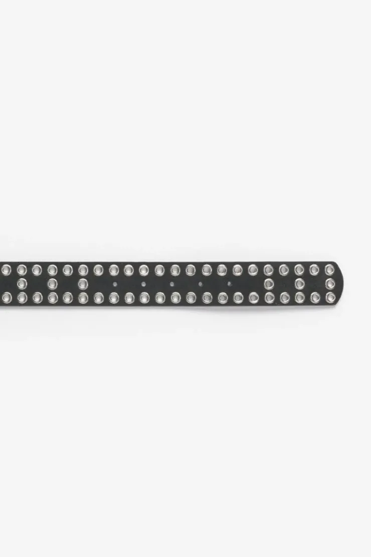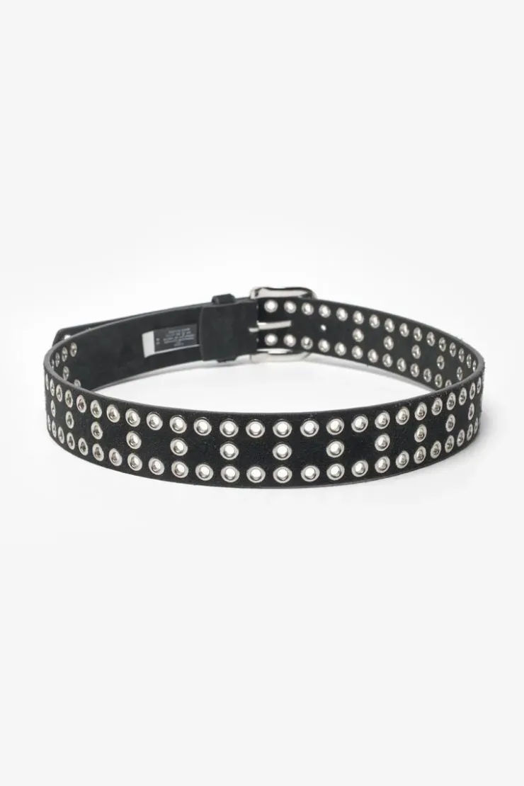 Cette Ceinture Lucia Est Ideale Pour Completer Vos Tenues Et Donner Un Cote Rock Avec Son Cuir Velours Pour Un Aspect Daim Noir Habille D’Oeillets Metalliques Argentes Et Sa Boucle Argentee.
