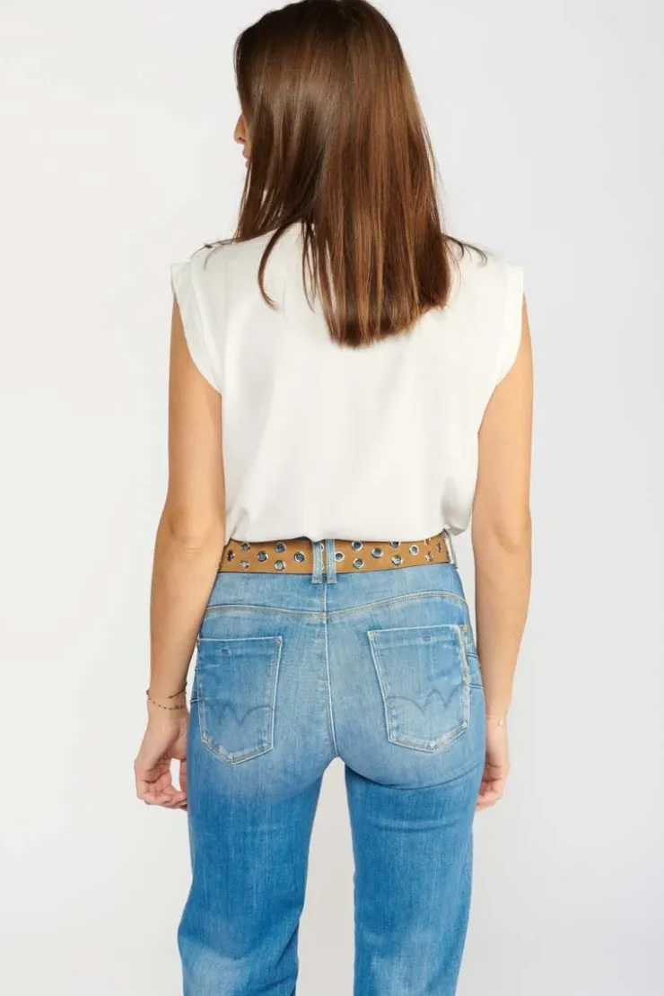 Cette Ceinture Minog En Daim Marron Est Tres Tendance Avec Ses Oeillets Metalliques Argentes, Sa Boucle Argentee Et Son Application Metallique Personnalisee « Ltc ».