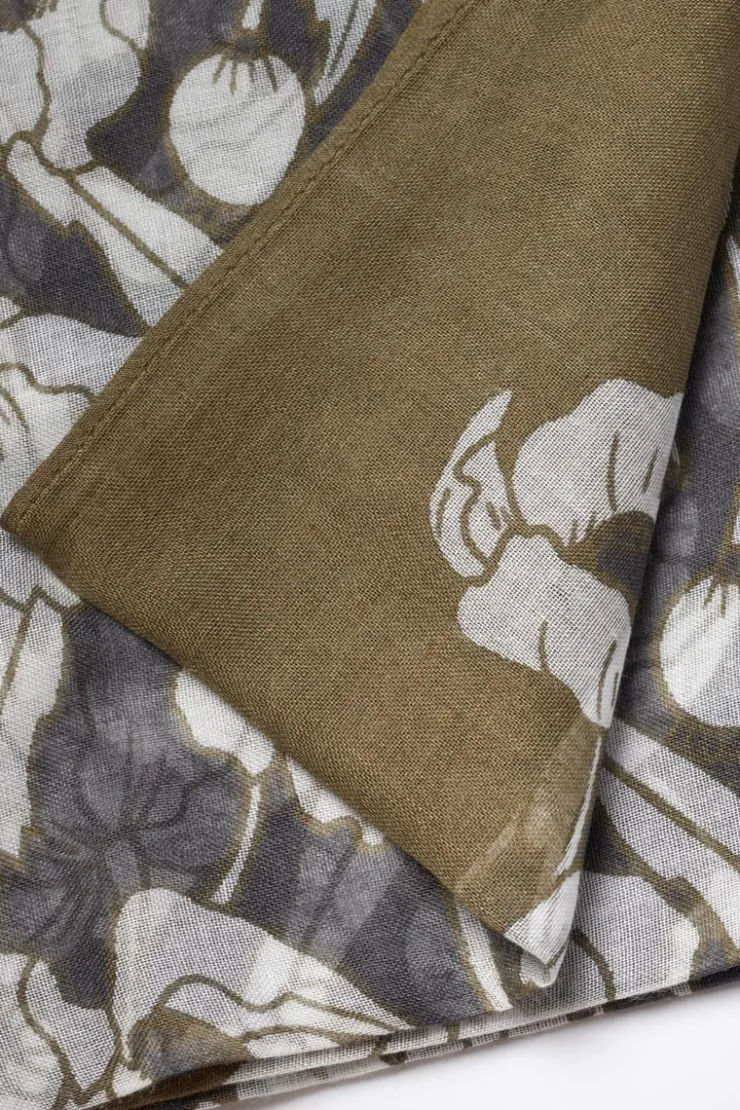 Femme Le Temps des Cerises Écharpes & Foulards-Foulard Valentine A Motif Fleuri Kaki
