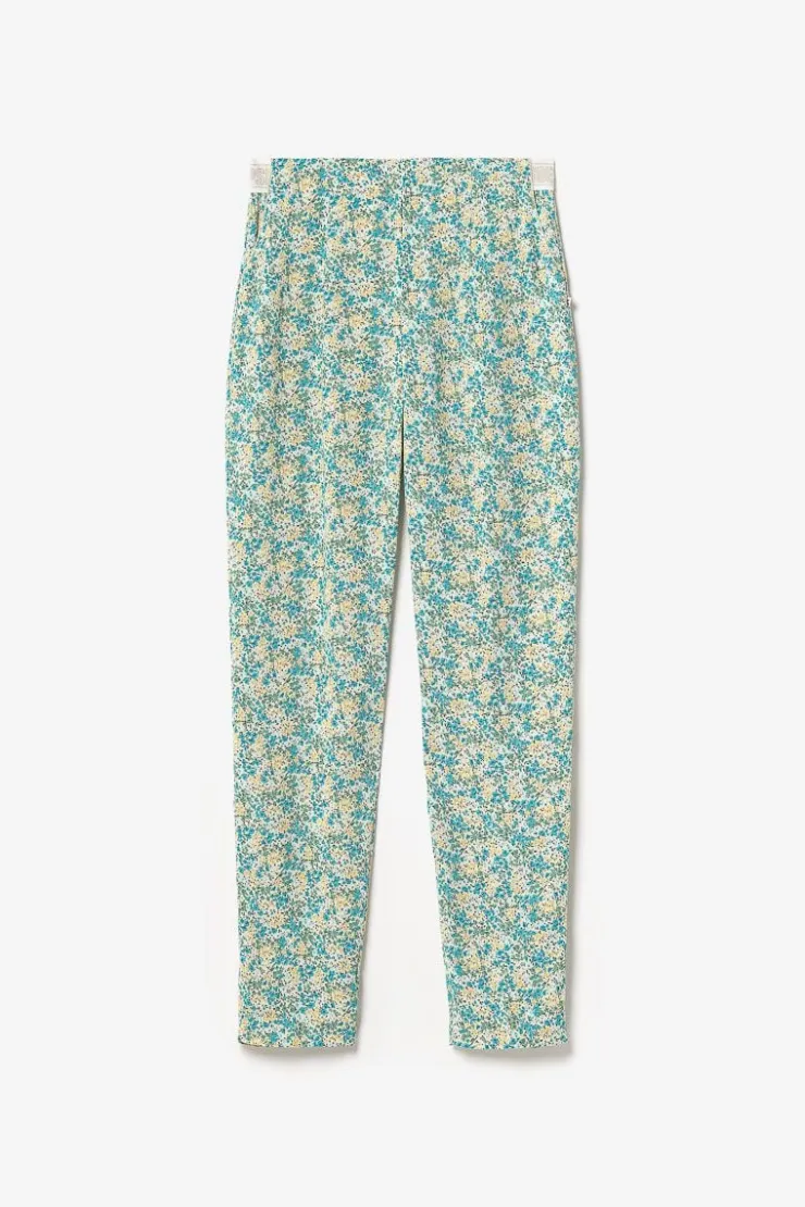 Femme Le Temps des Cerises Pantalons & Chinos-Pantalon Rani A Motif Fleuri Vert Et Bleu