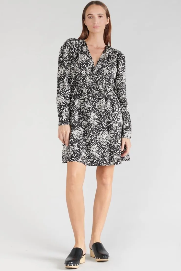 Cette Robe Edwina Est Parfaite Pour Un Look Feminin Elegant Avec Son Twill Satine Doux Et Fluide A Motif Fleuri Noir Et Blanc, Ses Petites Epaulettes, Son Col V Habille De Boutons Argentes Ainsi Que Sa Ceinture Elastiquee Pour Marquer La Taille Et Mettre En Valeur La Silhouette. Pour Plus De Confort, La Robe Est Doublee.