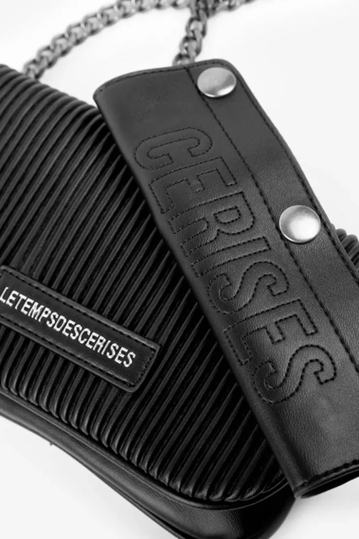 Ce Mini Sac A Bandouliere Jade Vous Accompagnera Partout En Soiree Avec Son Format Mini Tres Pratique. Sa Matiere A L’Effet Plisse Et Sa Bandouliere En Chaine Argentee Accompagnee De Son Renfort D’Epaule Personnalise Cerises Apportent La Touche Rock A Vos Tenues. Petit Mais Spacieux, Il Contient Trois Poches Dont Une Zippee Et Se Ferme Avec Des Aimants Invisibles Pour Plus De Confort.