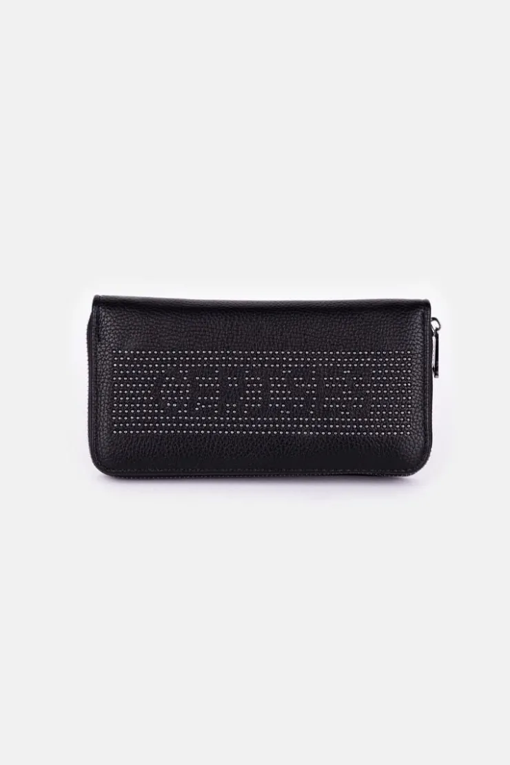 Ce Portefeuille Loren Noir Est Un Indispensable Avec Son Format Tout-En-Un Et Son Inscription Cloutee « Cerises » Qui Apporte Un Cote Rock.
