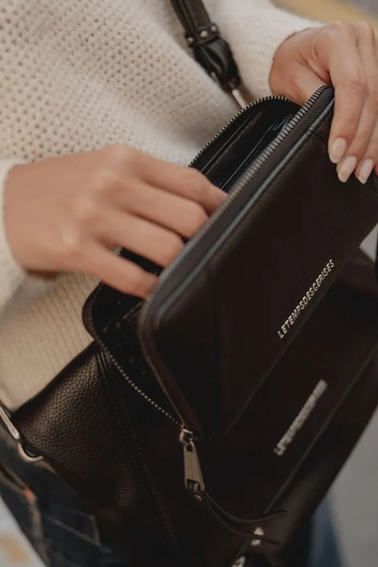 Ce Portefeuille Loren Noir Est Un Indispensable Avec Son Format Tout-En-Un. Son Inscription Metallique « Le Temps Des Cerises », Ses Coutures A L’Avant Et Sa Fermeture Zippee Avec Deux Dragonnes Apportent Plus De Style.