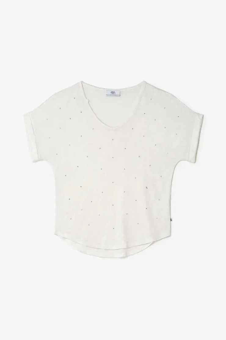 Ce Top Bibou Est Un Indispensable Du Dressing Avec Sa Coupe Loose, Son Col Tunisien Et Ses Strass Ton Sur Ton A L’Avant. Son Tissu Legerement Brillant Est Doux Et Agreable A Porter.
