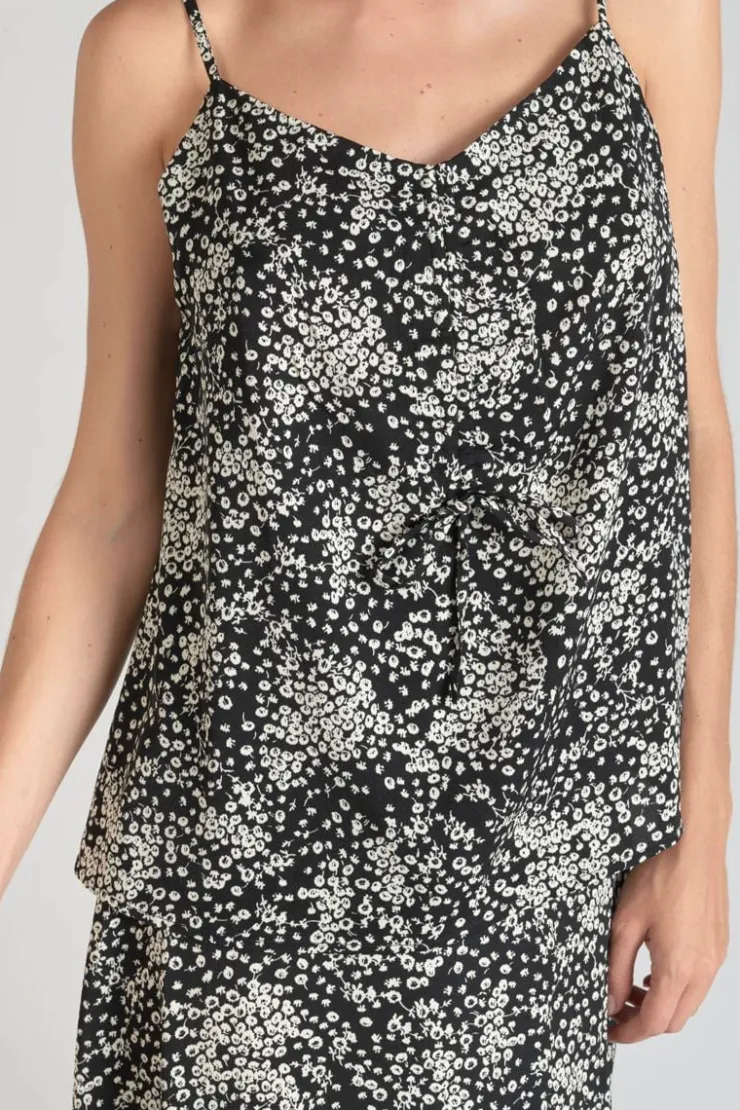 Femme Le Temps des Cerises Tops-Caraco Veronic A Motif Fleuri Noir Et Blanc