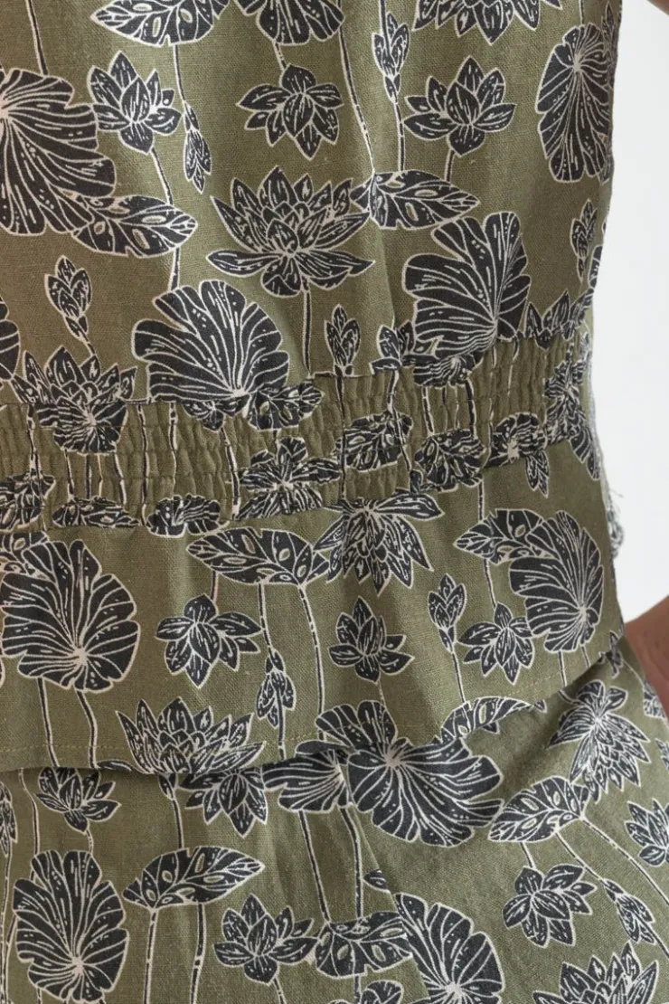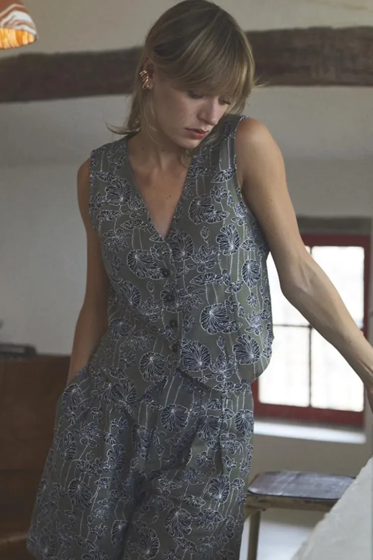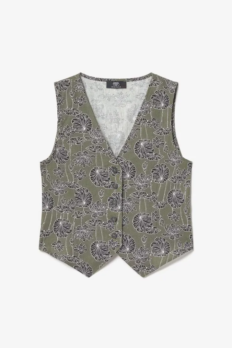 Femme Le Temps des Cerises Tops-Gilet Gish Kaki A Motif Fleuri