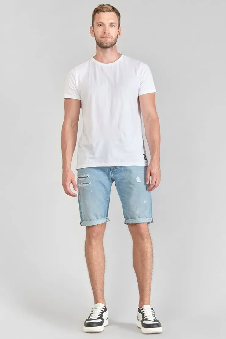Homme Le Temps des Cerises Bermudas-Bermuda Laredo En Jeans Bleu Clair Delave Destroy