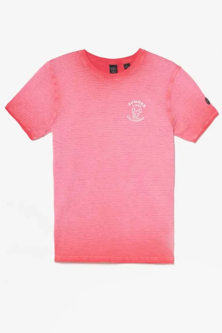 Ce T-Shirt Balis Corail Vous Donnera Un Look Casual Avec Ses Rayures Et Son Imprime Au Niveau De La Poitrine Ton Sur Ton, Son Effet Delave Et Ses Bords Roulottes Au Niveau Des Manches. Pour Le Detail, Un Ecusson Le Temps Des Cerises Sur La Manche Gauche.